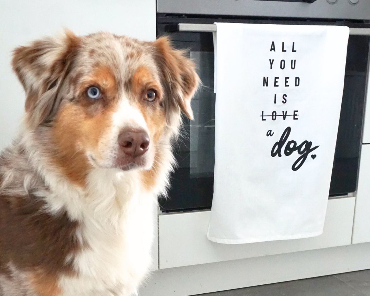 Mit dem liebevollen Statement setzt du ein Zeichen in Deiner Küche und bringst Deine einzigartige Mensch-Hund-Beziehung zum Ausdruck. Mit der edlen Banderole aus nachhaltigem Graspapier erhält das Geschirrtuch den letzten Schliff und kommt schon im praktischen Geschenk-Look daher.